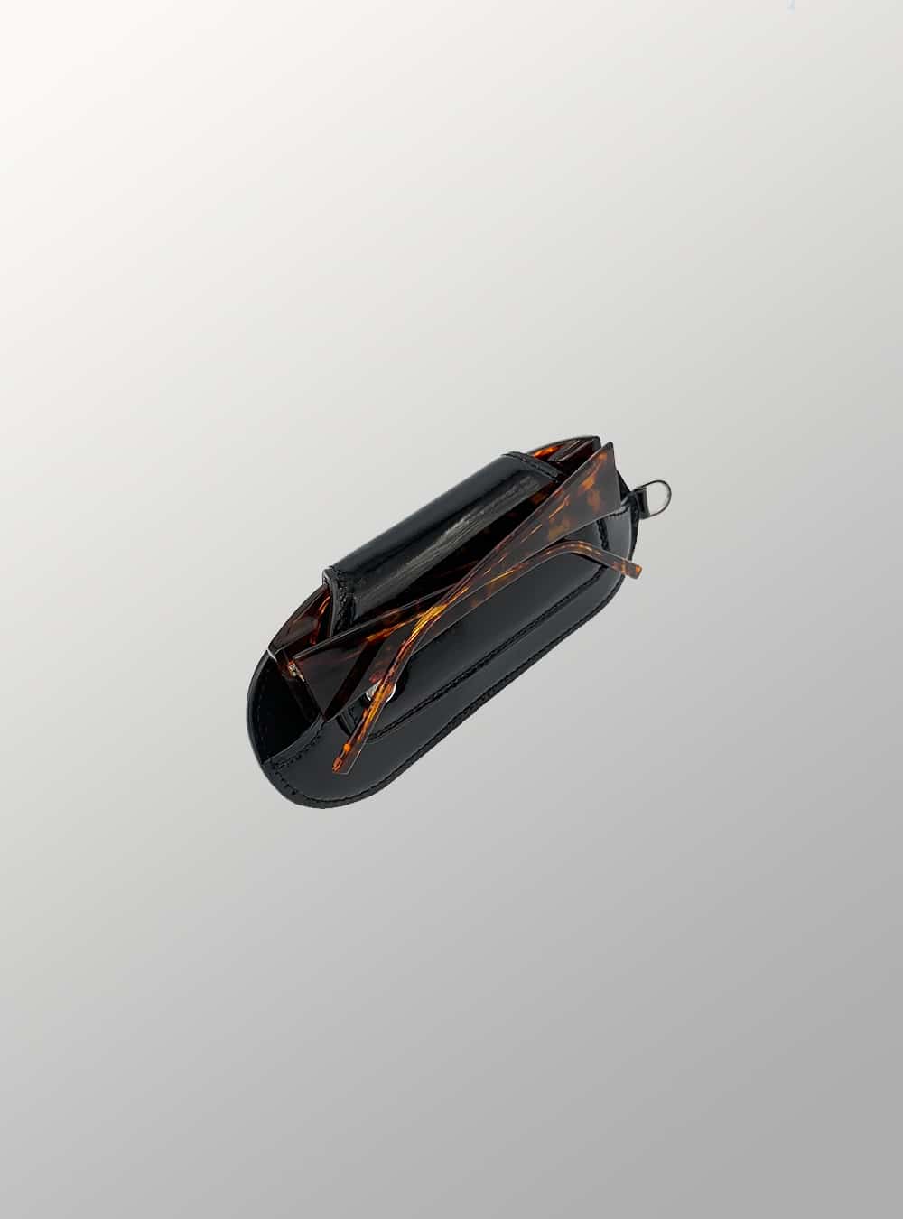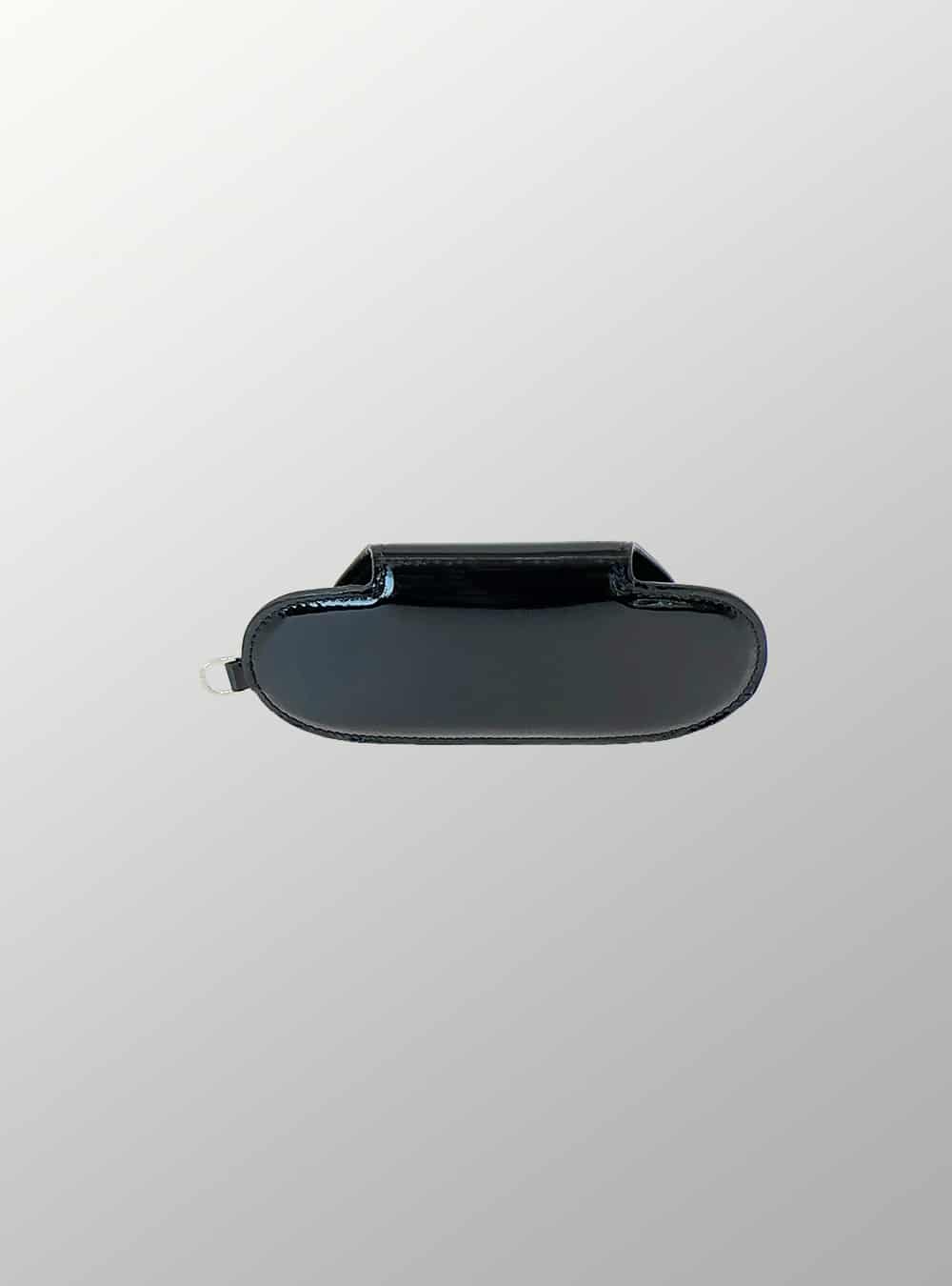 DAY is an eyeglasses case in black matt leather and patent leather.