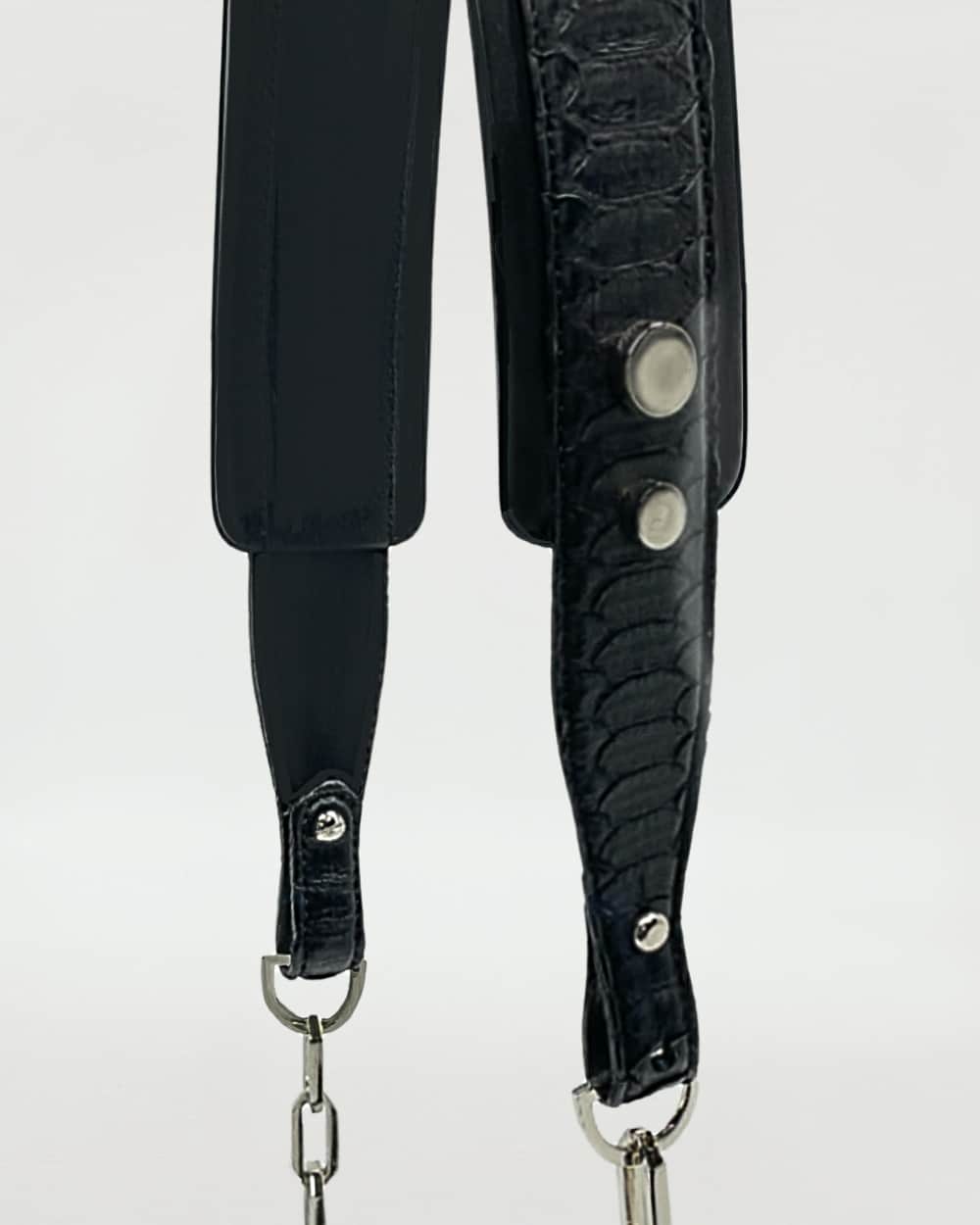JOSS est une bandoulière en python véritable noir et cuir uni noir.