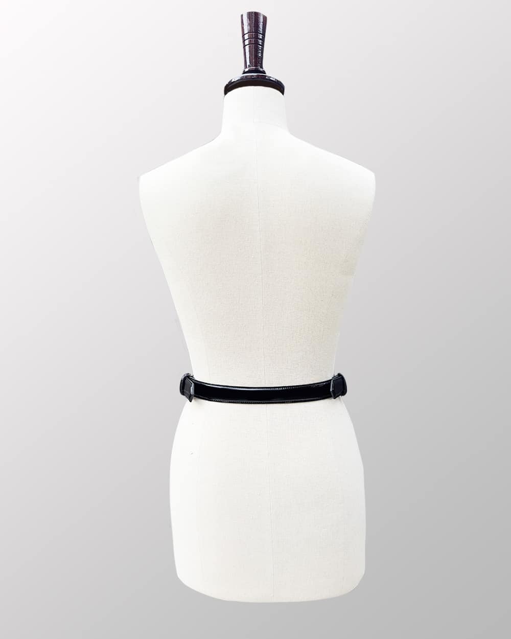 Réalisée en cuir de veau verni au noir profond,à l’éclat nocturne, la ceinture LILITH se distingue par la qualité de sa réalisation et la justesse de ses proportions.